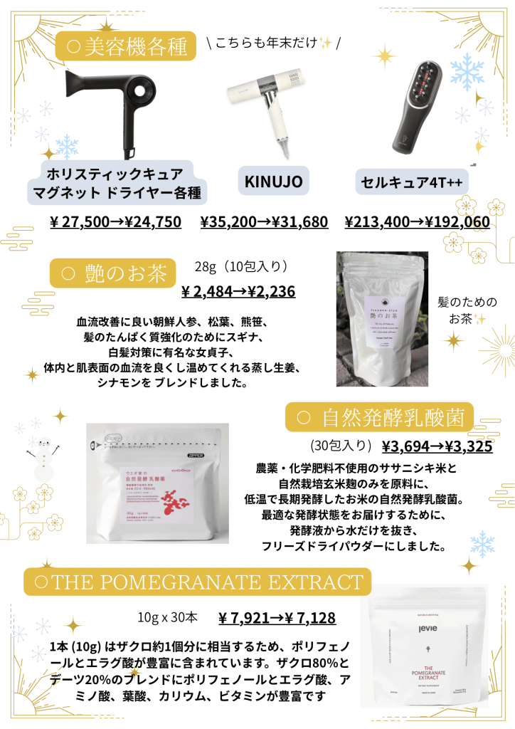 年末年始の営業日。年末キャンペーンも始まりました🎄✨
