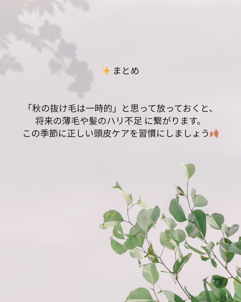 → これらが重なり、秋は一年で最も抜け毛が増えやすい季節と言われています。